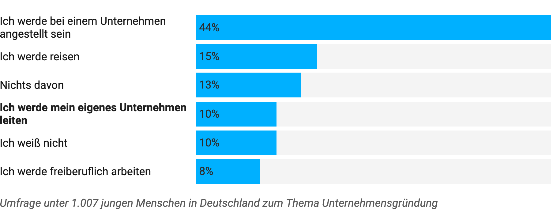 Junge Menschen sprühen häufig vor guten Ideen, setzen diese jedoch nur in den seltensten Fällen in die Tat um. Mit dem Gründungswettbewerb “20 under 20” greift Wise jungen Unternehmern aus ganz Europa daher unter die Arme und fördert ihre Ideen. Im Vorfeld hat Wise in einer repräsentativen Umfrage 3.500 junge Menschen in Europa zu den Chancen und Hindernissen hinsichtlich der Unternehmensgründung befragt. Wie die 1.007 in Deutschland befragten 16- bis 25-jährigen die Möglichkeiten einschätzen, zeigen die nachfolgenden Umfrageergebnisse: