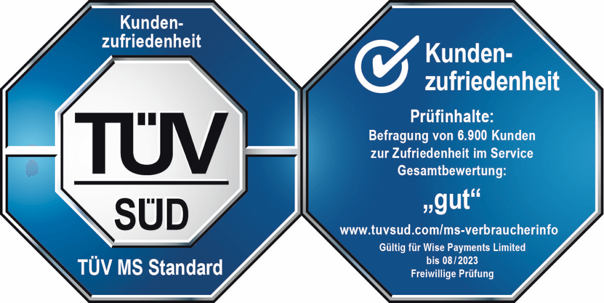 Wir möchten unser Angebot für deutschsprachige Nutzer:innen ganz gezielt weiter verbessern. Daher haben wir uns in diesem Jahr erneut einer Überprüfung des TÜV Süd unterzogen. Wise wurde von der international renommierten Prüforganisation genau unter die Lupe genommen. Untersucht wurde dabei die Kundenzufriedenheit.