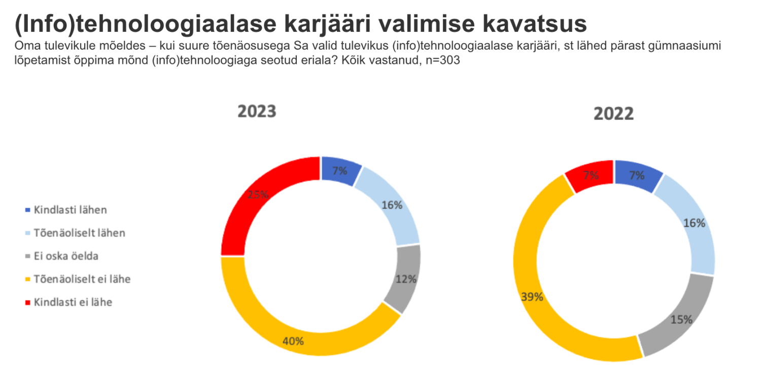 Uuring näitab, et noorte huvi (info)tehnoloogiaalase hariduse vastu ei ole aasta jooksul muutunud – endiselt väljendas 23% vastanuist selle vastu huvi, kusjuures 7% kavatseb kindlasti ning 16% tõenäoliselt jätkata õpinguid mõnel (info)tehnoloogiaga seotud erialal.