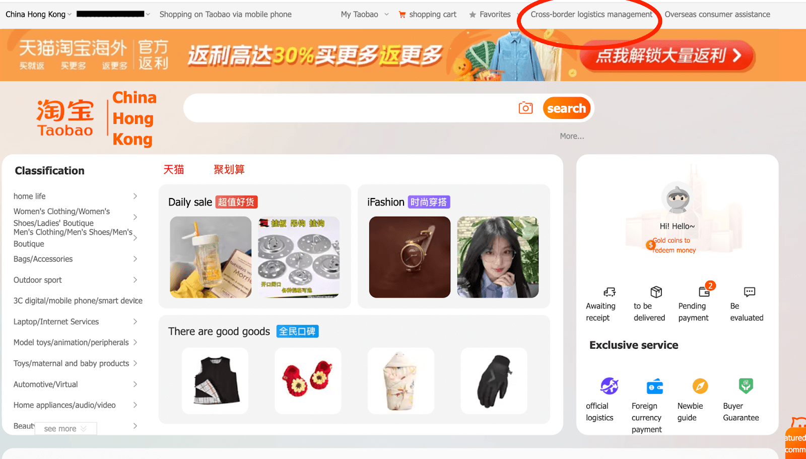 Ta-da! You have already placed your order! Now your package is on the way to you. You can check the status of your shipment on the Taobao website by clicking on the Cross-border Logistics Management tab.