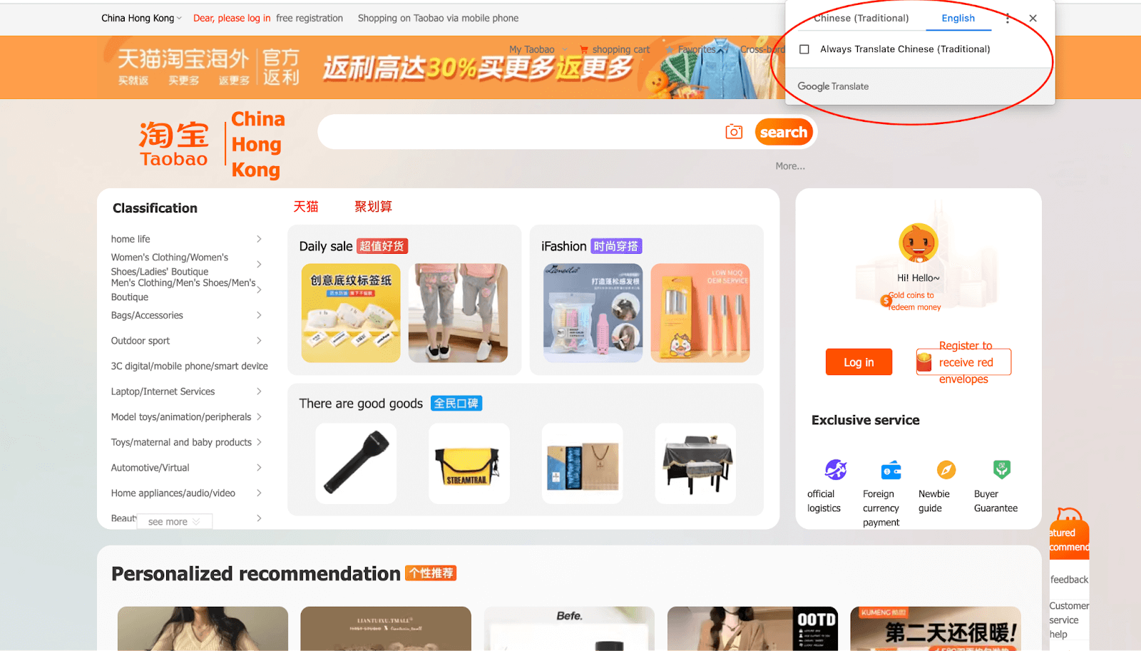 The most convenient way to translate Taobao to English is through a web translator. We highly recommend Google Chrome for the best user experience.