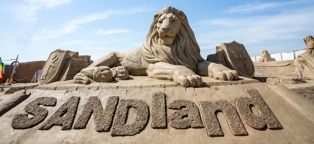 Sandland egy hatalmas szabadtéri kiállítás, ahol tehetséges művészek homokszobrait csodálhatod meg. A kiállított szobroknak minden évben új témát választanak, például a mitológiát, híres történelmi eseményeket vagy filmeket.