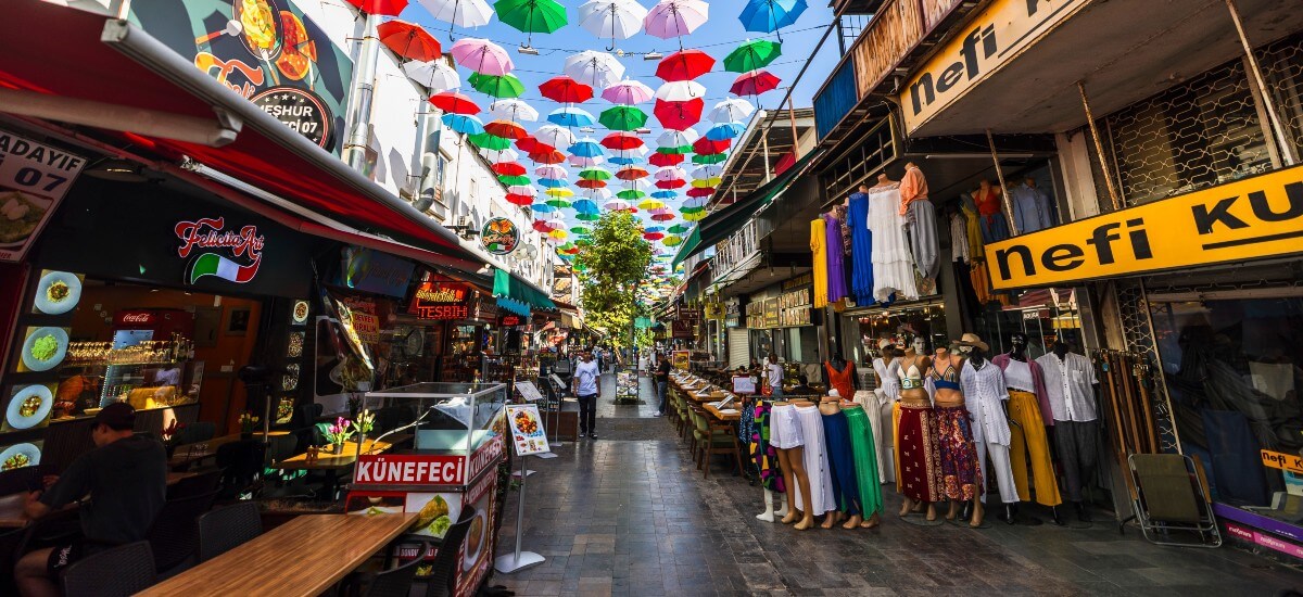 Antalya Régi Bazárjában a város gazdag történelme és vibráló kultúrája elevenedik meg. Pezsgő élettel és autentikus török kultúrával találkozhatsz itt. Az árusok standjain ékszerek, szőnyegek, textilek, kerámiák, fűszerek és ajándéktárgyak széles választékát találod. Az árak kedvezőek, az alkudozás pedig szinte kötelező és szórakoztató része a vásárlásnak.