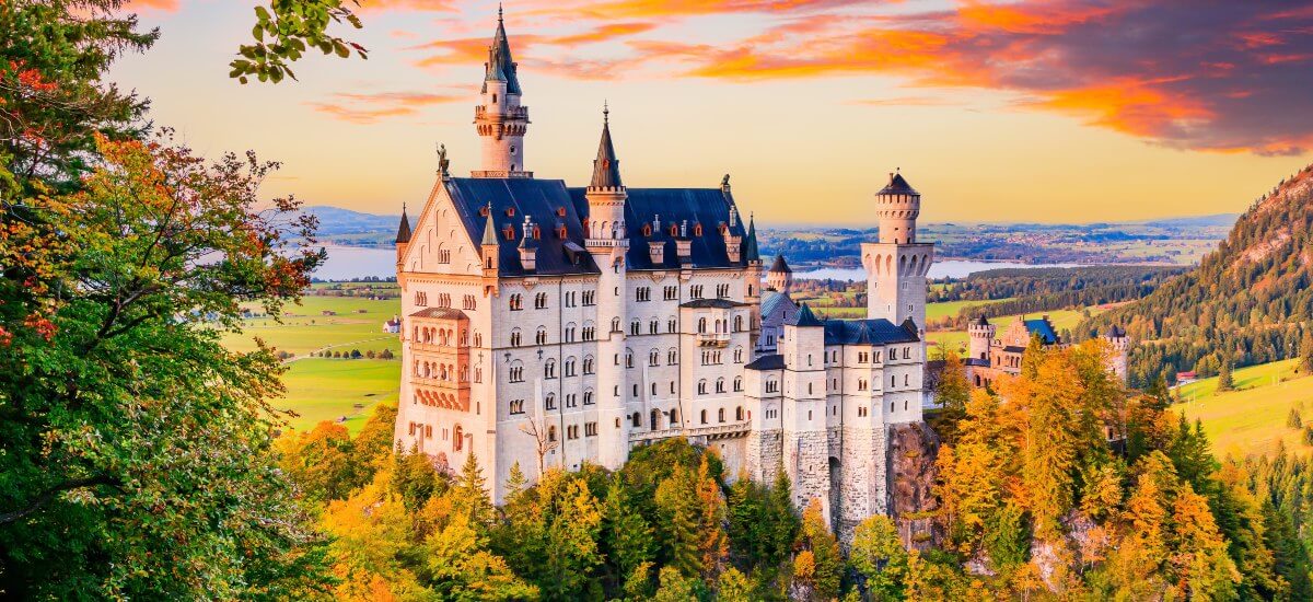 A Münchentől 120 km-re fekvő Neuschwanstein kastély az egyik legnépszerűbb kirándulási célpont a városból. A tündérmesébe illő épület Walt Disney-t is megihlette, ez szolgált a Csipkerózsika kastély mintájául. Belépve pompás dísztermek és freskókkal borított falak várnak. A környező hegyvidéki táj lenyűgöző látványt nyújt, a legszebb panoráma a Marienbrücke hídról tárul eléd.
