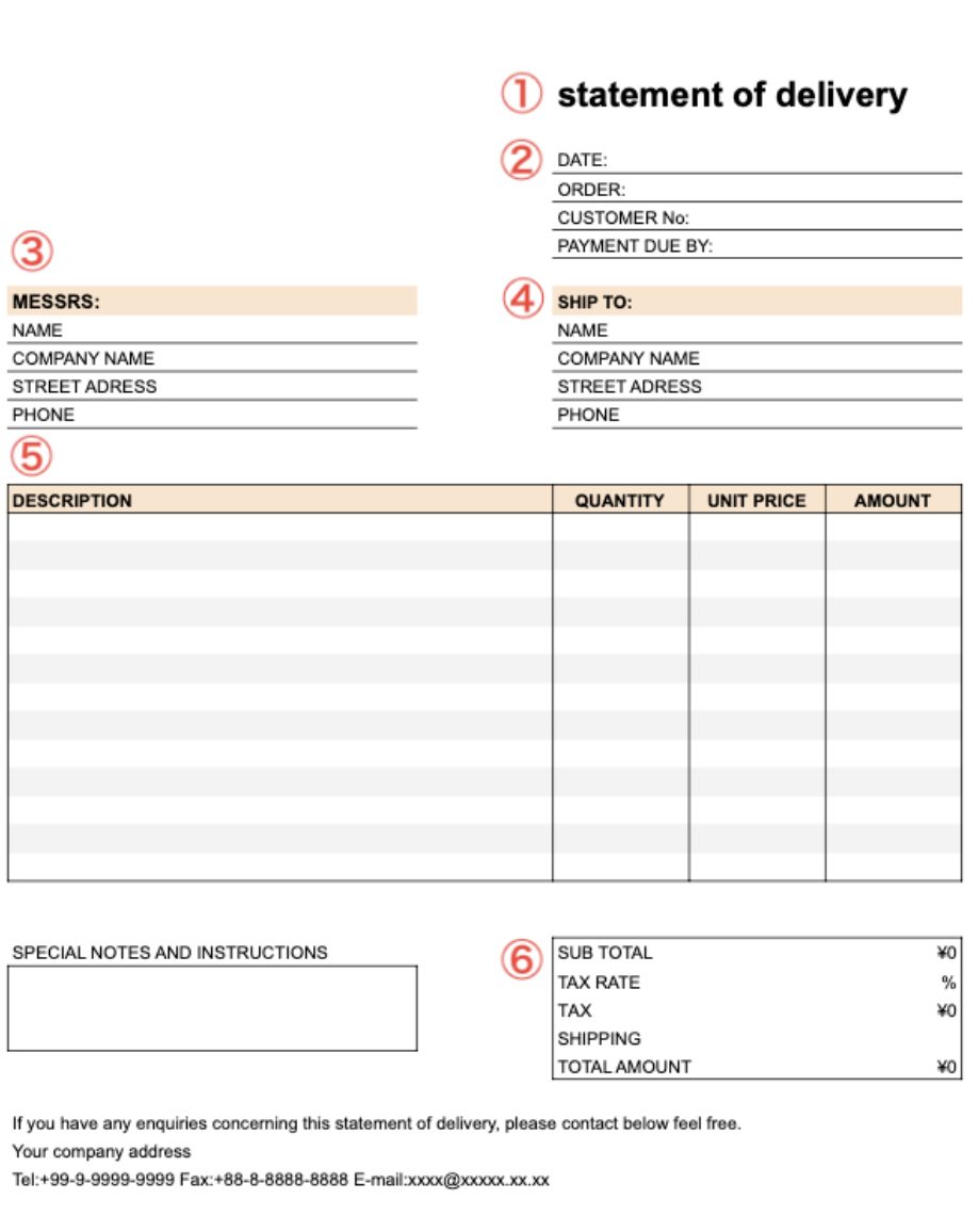 書面の冒頭には、“statement of delivery”などのタイトルを記入します。上記の通り“delivery slip”や“delivery note”でも問題ありません。