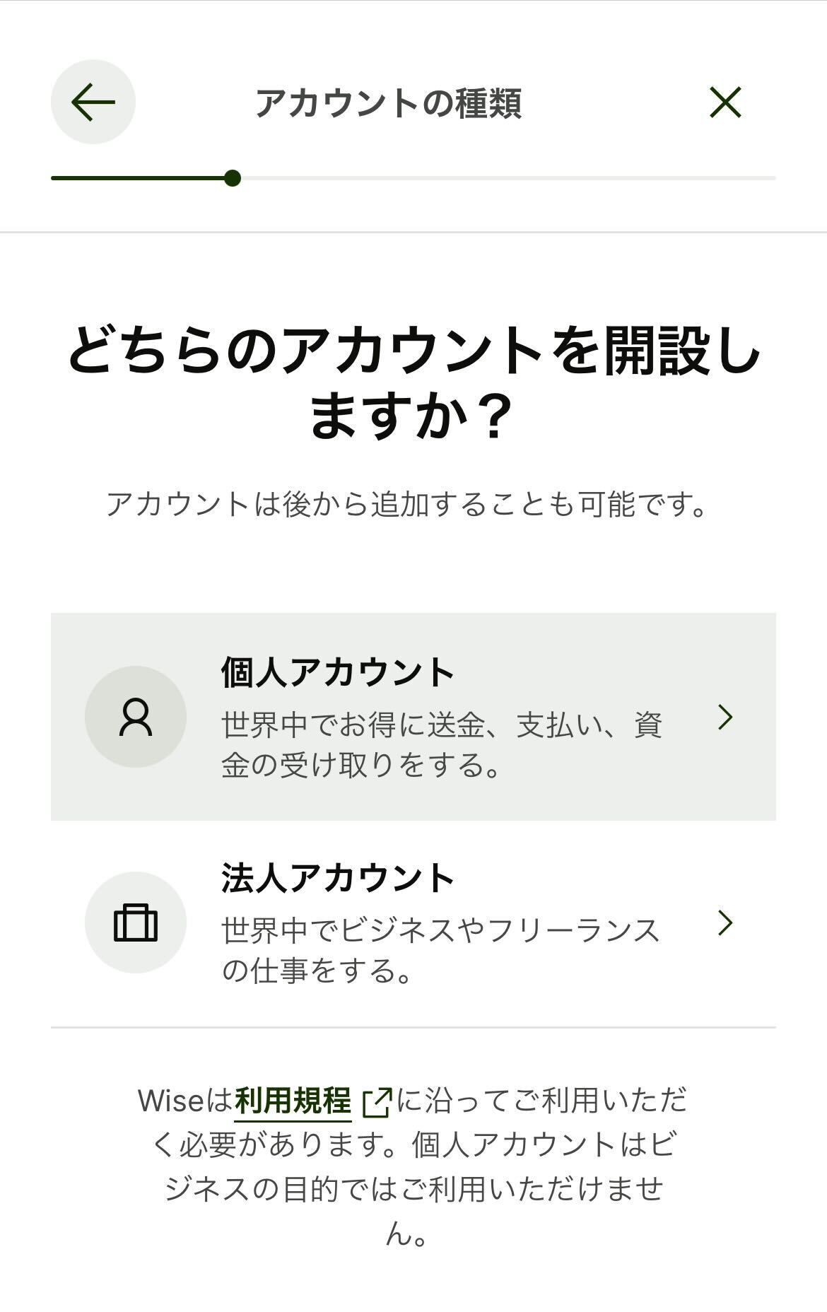 メールアドレスを登録後、開設するアカウントの種類(個人アカウントもしくは法人アカウント)を選択します。