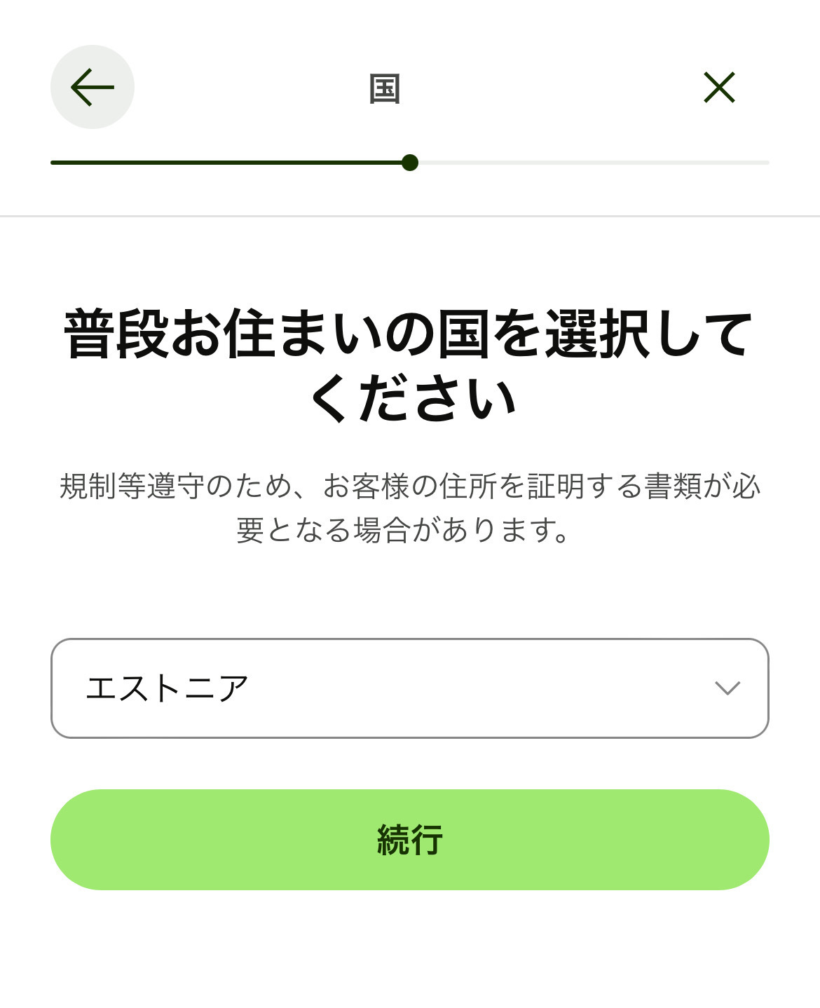 非居住者の場合、「居住国を選択」する際に、現在住んでいる国を選択することを忘れないようにしましょう。