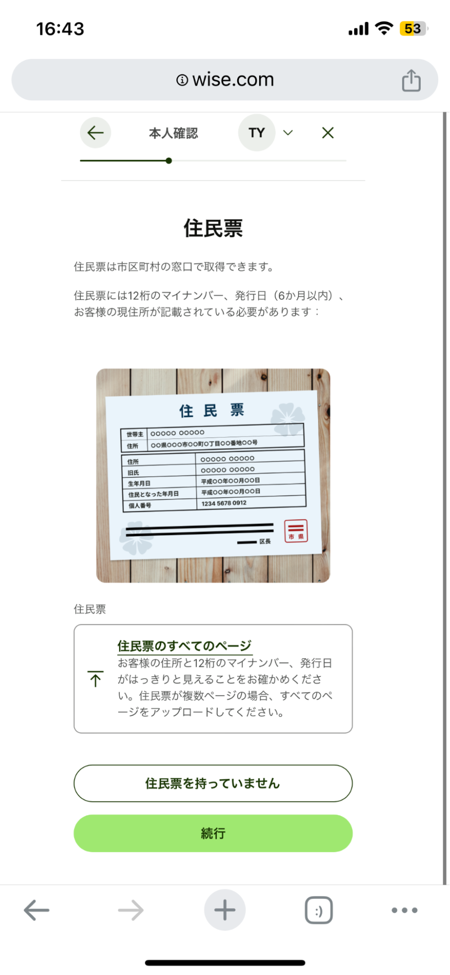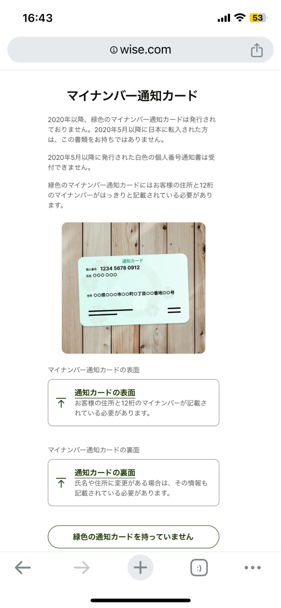 日本国内に在住の居住者の方がWiseで本人確認をする場合、外国籍の方も含め、マイナンバーは必須です。