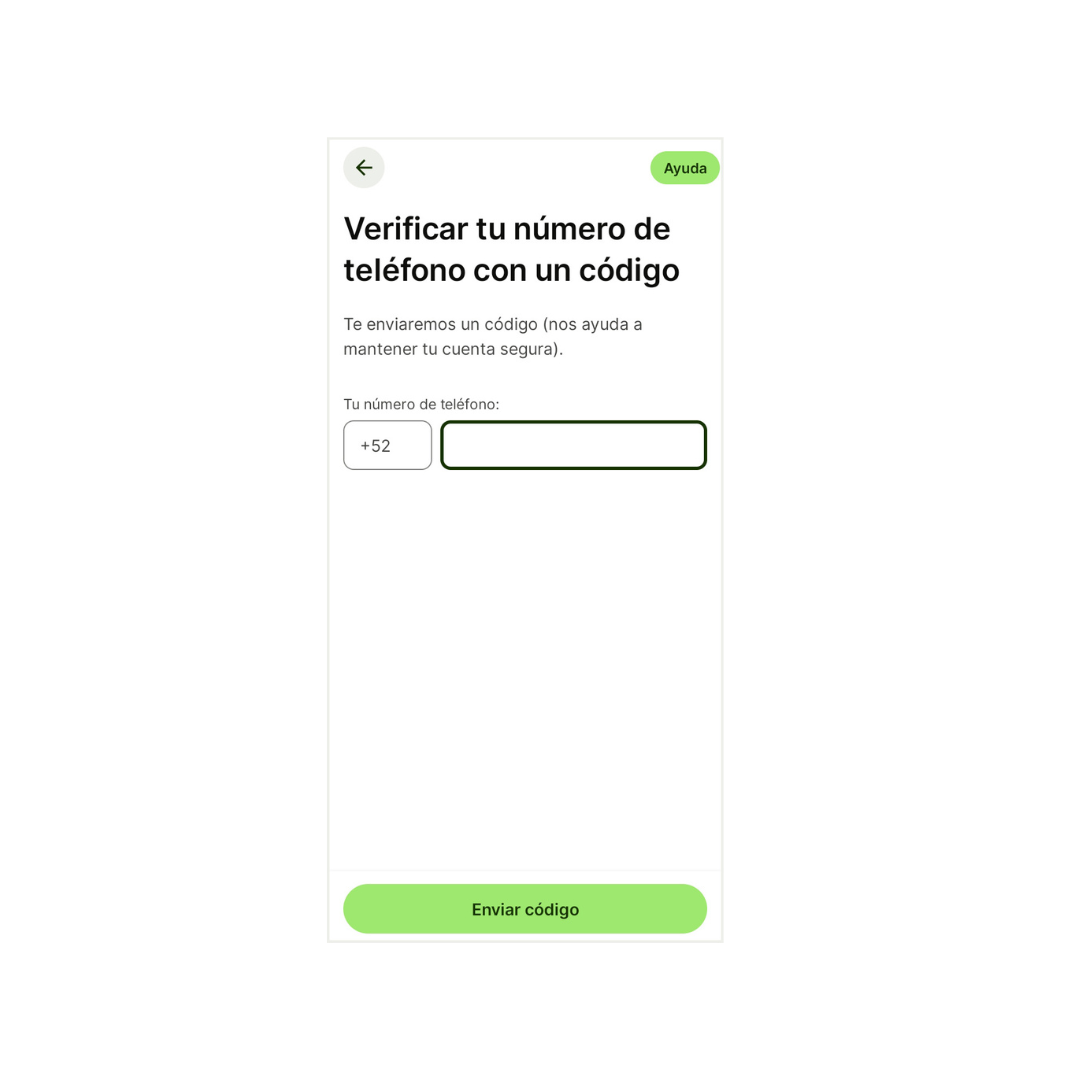 3.- Introduce tu número de teléfono para recibir un código de verificación SMS