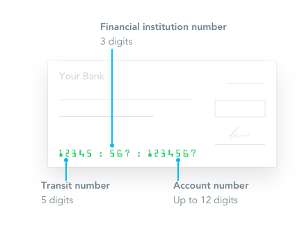 In order to send funds to and from your Canadian bank account, you will need to have three account details at hand; Financial Institution number (3 digits), Branch Transit Number (5 digits) and Account Number (5-12 digits). These details help Wise send funds to and withdraw funds from the right account.